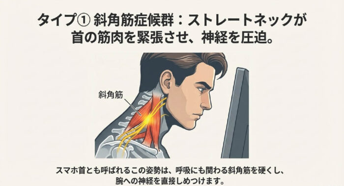 • キーボードを叩く姿勢で斜角筋が常に緊張