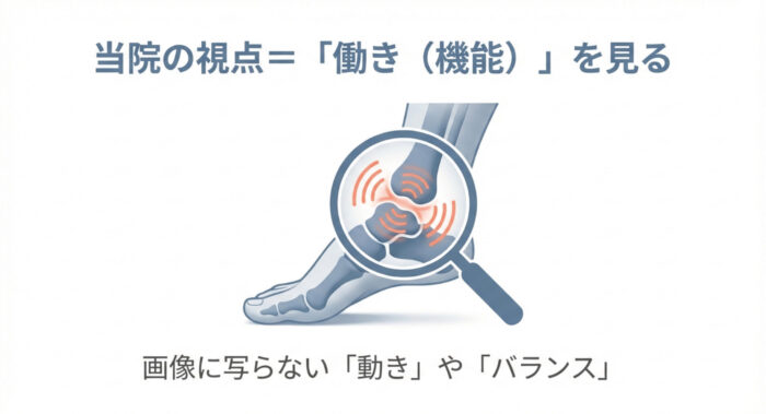 レントゲンには写らない「機能的な問題」が残っていることが、長引く痛みの正体であるケースが多いのです。