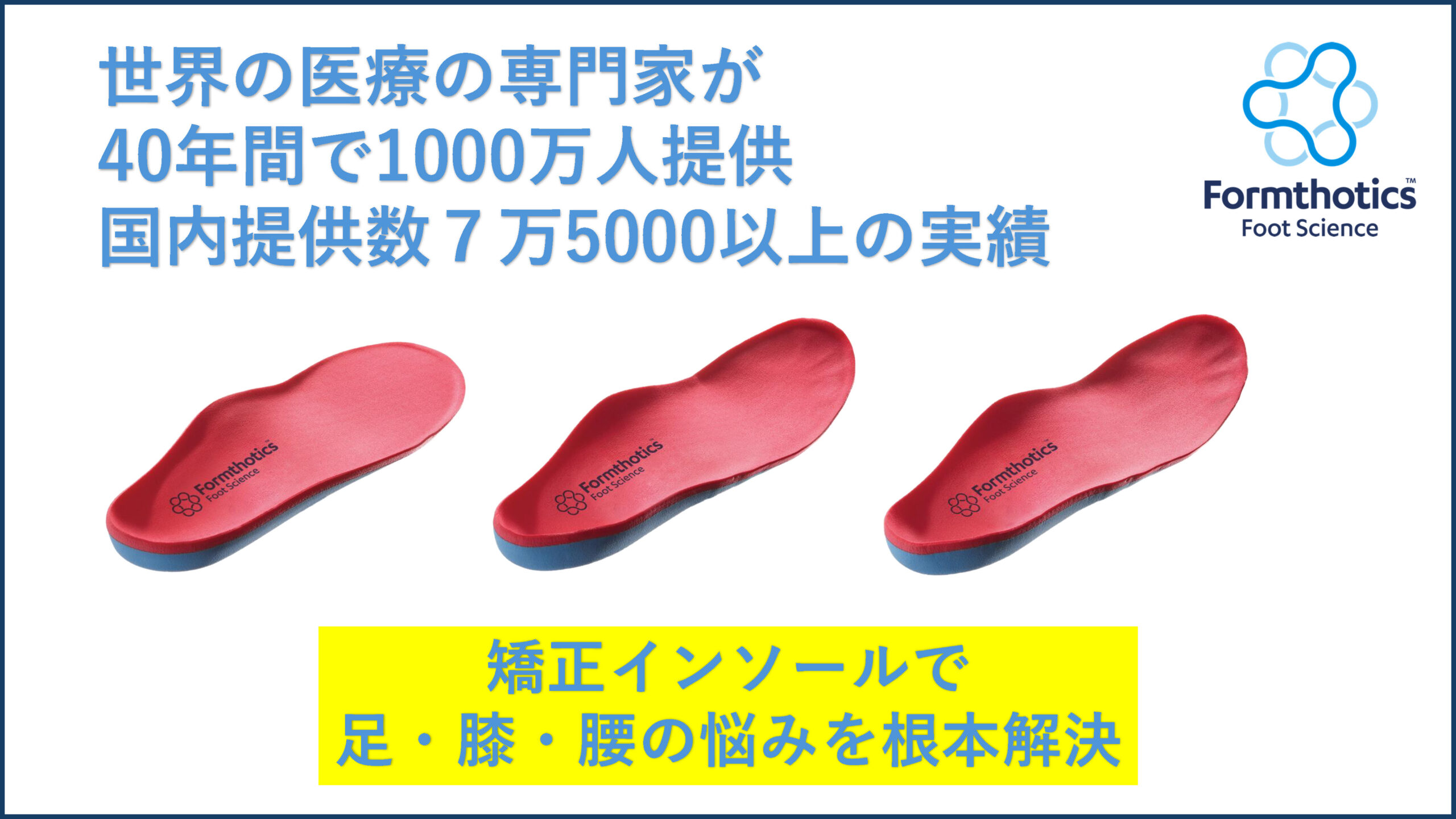 ・矯正用インソール「フォームソティックス」 ニュージーランド発の医療用インソール。崩れたアーチ構造を正しい位置で支える「足のギプス」のような役割を果たし、歩行時の衝撃を軽減します。